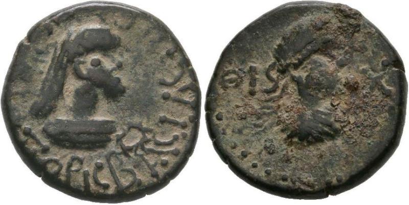 - ΒΑCΙΛΕωC ΡΗCΚΟΥΠΟΡΙC. Бюст царя вправо, справа «венок»