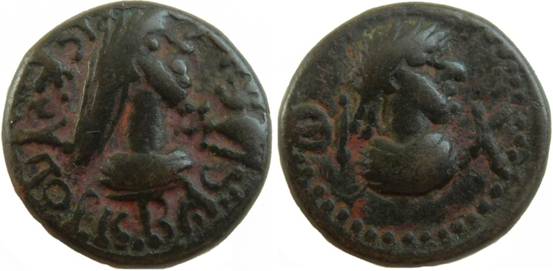 - ΒΑCΙΛΕωC ΡΗCΚΟΥΠΟΡΙC. Бюст царя вправо, справа «венок»
