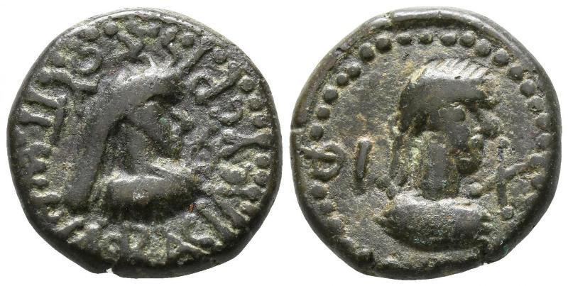 - ΒΑCΙΛΕωC ΡΗCΚΟΥΠΟΡΙC. Бюст царя вправо, справа «венок»