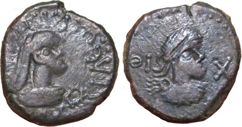 - ΒΑCΙΛΕωC ΡΗCΚΟΥΠΟΡΙC. Бюст царя вправо, справа «венок»