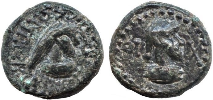 - ΒΑCΙΛΕωC ΡΗCΚΟΥΠΟΡΙC. Бюст царя вправо, справа «венок»