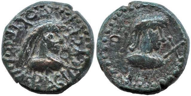 - ΒΑCΙΛΕωC ΡΗCΚΟΥΠΟΡΙC. Бюст царя вправо, справа «венок»