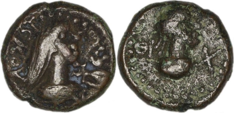 - ΒΑCΙΛΕωC ΡΗCΚΟΥΠΟΡΙC. Бюст царя вправо, справа «венок»
