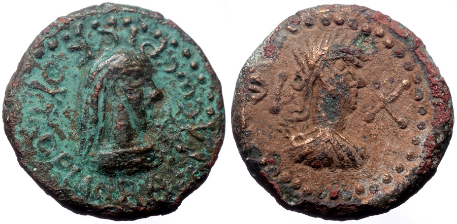 - ΒΑCΙΛΕωC ΡΗCΚΟΥΠΟΡΙC. Бюст царя вправо, справа «венок»