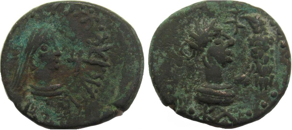 - ΒΑCΙΛΕωC ΡΗCΚΟΥΠΟΡΙC. Бюст царя вправо, справа трезубец