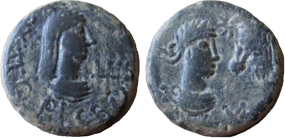 - ΒΑCΙΛΕωC ΡΗCΚΟΥΠΟΡΙC. Бюст царя вправо, справа трезубец