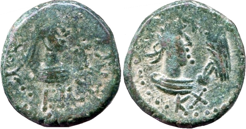- Бюст императора вправо, внизу год KX (620 г. б. э.), справа орел на шаре с венком в клюве