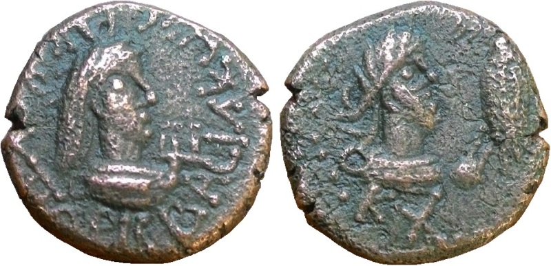 - ΒΑCΙΛΕωC ΡΗCΚΟΥΠΟΡΙC. Бюст царя вправо, справа трезубец