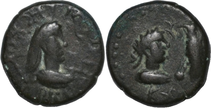 - Бюст императора вправо, внизу год KX (620 г. б. э.), справа орел на шаре с венком в клюве