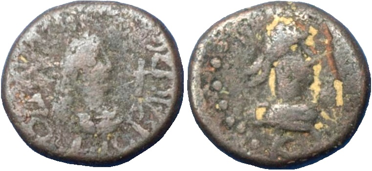 - Бюст императора вправо, внизу год KX (620 г. б. э.), справа орел на шаре с венком в клюве