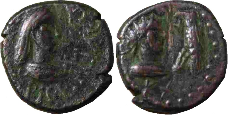 - ΒΑCΙΛΕωC ΡΗCΚΟΥΠΟΡΙC. Бюст царя вправо, справа трезубец