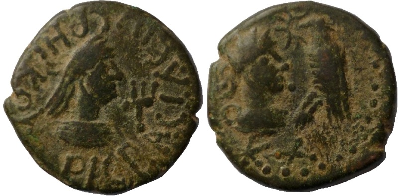 - ΒΑCΙΛΕωC ΡΗCΚΟΥΠΟΡΙC. Бюст царя вправо, справа трезубец