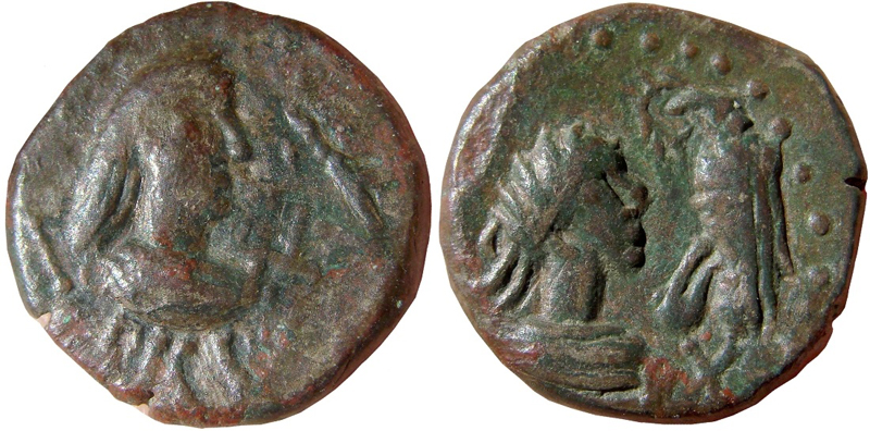 - ΒΑCΙΛΕωC ΡΗCΚΟΥΠΟΡΙC. Бюст царя вправо, справа трезубец