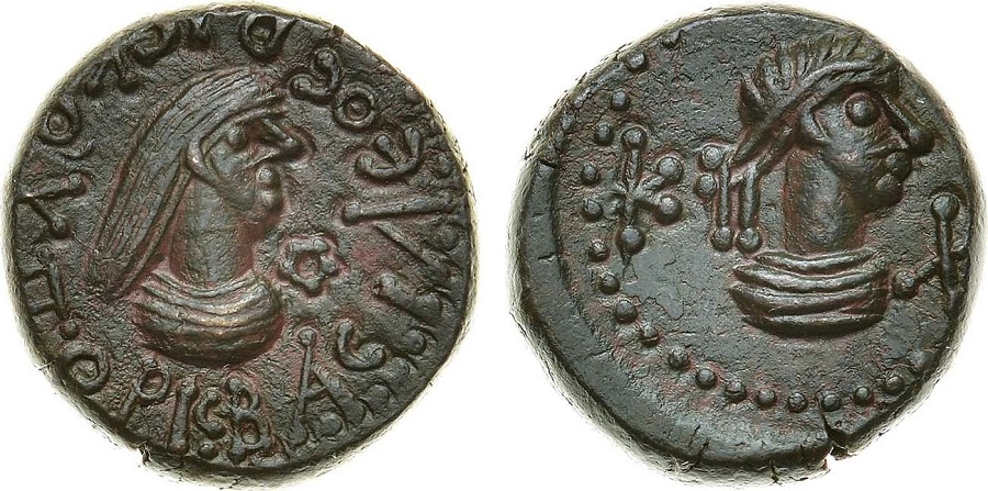 - ΒΑCΙΛΕΟC ΡΙCΚΟΥΠΟΡΙC. Бюст царя вправо, справа «венок»