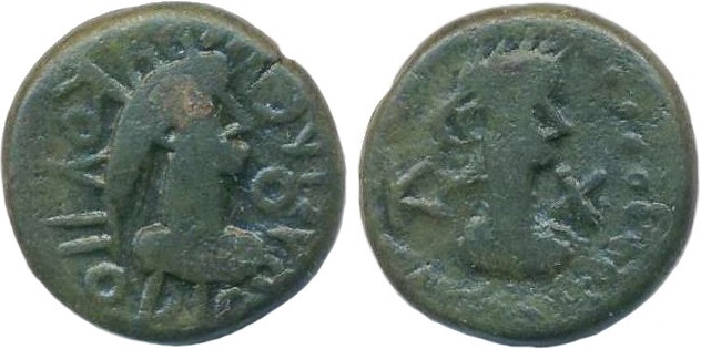 ΒΑCΙΛΕΟC ΡΙCΚΟΥΠΟΡ. Бюст царя вправо, справа «венок»