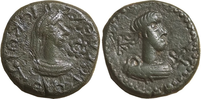 - ΒΑCΙΛΕωC ΡΗCΚΟΥΠΟΡΙC. Бюст царя вправо, справа «венок»