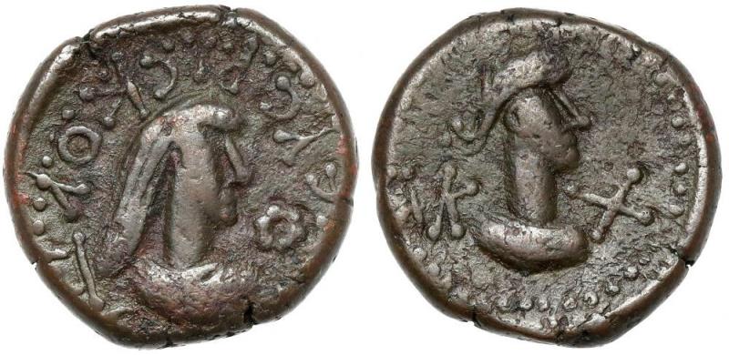 - ΒΑCΙΛΕωC ΡΗCΚΟΥΠΟΡΙC. Бюст царя вправо, справа «венок»