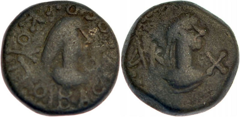 - ΒΑCΙΛΕωC ΡΗCΚΟΥΠΟΡΙC. Бюст царя вправо, справа «венок»
