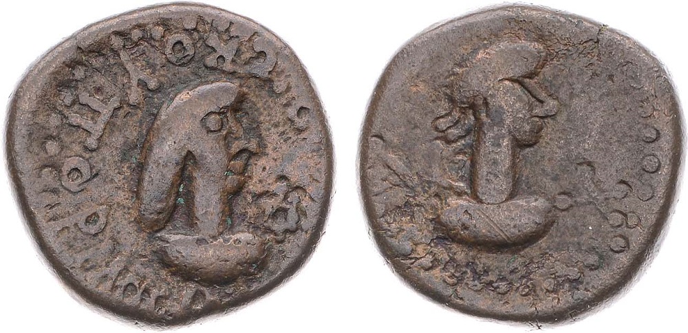 - ΒΑCΙΛΕωC ΡΗCΚΟΥΠΟΡΙC. Бюст царя вправо, справа «венок»