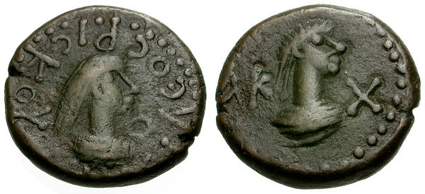 - Бюст императора вправо, год АK-X (621 г. б. э.)