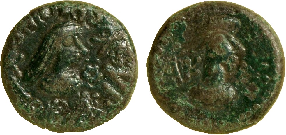 - ΒΑCΙΛΕωC ΡΗCΚΟΥΠΟΡΙC. Бюст царя вправо, справа «венок»