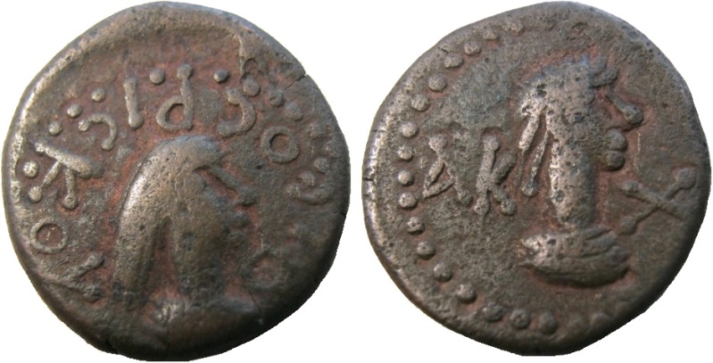 - ΒΑCΙΛΕωC ΡΗCΚΟΥΠΟΡΙC. Бюст царя вправо, справа «венок»