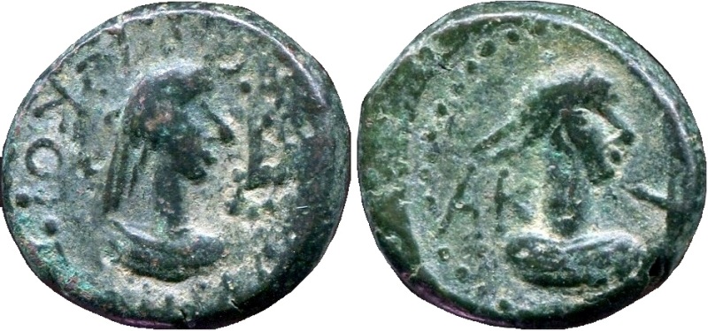 - ΒΑCΙΛΕωC ΡΗCΚΟΥΠΟΡΙC. Бюст царя вправо, справа «венок»