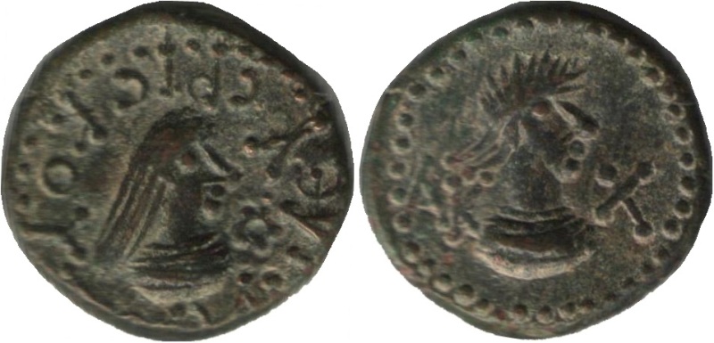 - ΒΑCΙΛΕωC ΡΗCΚΟΥΠΟΡΙC. Бюст царя вправо, справа «венок»