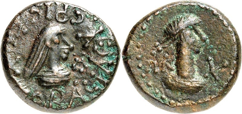 - ΒΑCΙΛΕωC ΡΗCΚΟΥΠΟΡΙC. Бюст царя вправо, справа «венок»