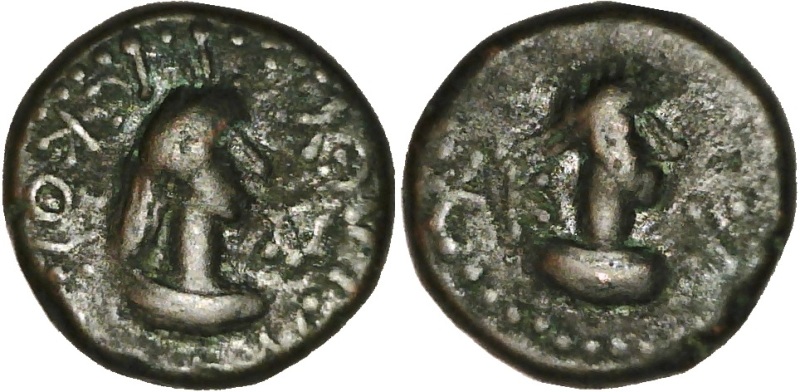 - ΒΑCΙΛΕωC ΡΗCΚΟΥΠΟΡΙC. Бюст царя вправо, справа «венок»