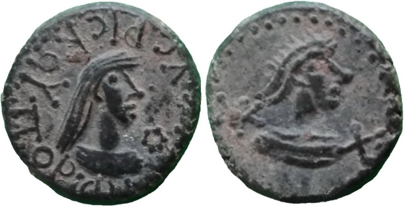- ΒΑCΙΛΕωC ΡΗCΚΟΥΠΟΡΙC. Бюст царя вправо, справа «венок»