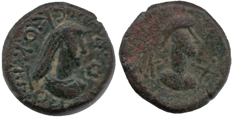 - ΒΑCΙΛΕωC ΡΗCΚΟΥΠΟΡΙC. Бюст царя вправо, справа «венок»