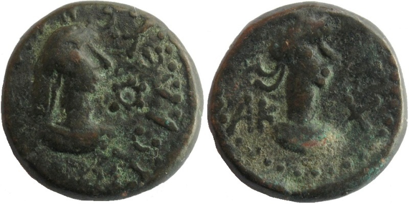 - ΒΑCΙΛΕωC ΡΗCΚΟΥΠΟΡΙC. Бюст царя вправо, справа «венок»