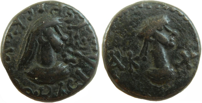 - Бюст императора вправо, год АK-X (621 г. б. э.)