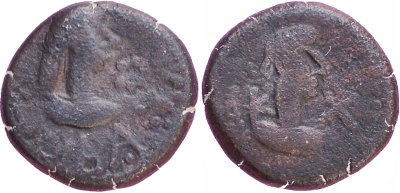 - ΒΑCΙΛΕωC ΡΗCΚΟΥΠΟΡΙC. Бюст царя вправо, справа «венок»