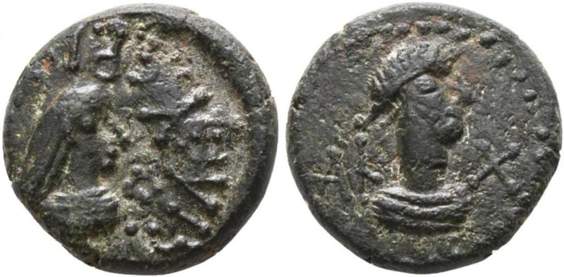 - ΒΑCΙΛΕωC ΡΗCΚΟΥΠΟΡΙC. Бюст царя вправо, справа «венок»