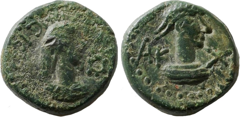 - ΒΑCΙΛΕωC ΡΗCΚΟΥΠΟΡΙC. Бюст царя вправо, справа «венок»