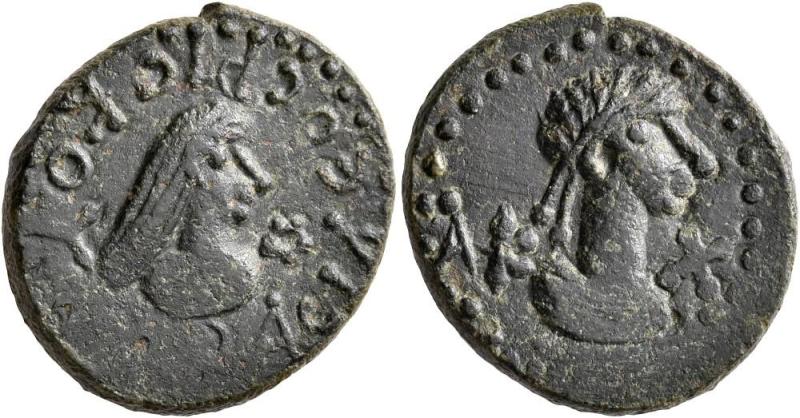 - ΒΑCΙΛΕωC ΡΗCΚΟΥΠΟΡΙC. Бюст царя вправо, справа «венок»