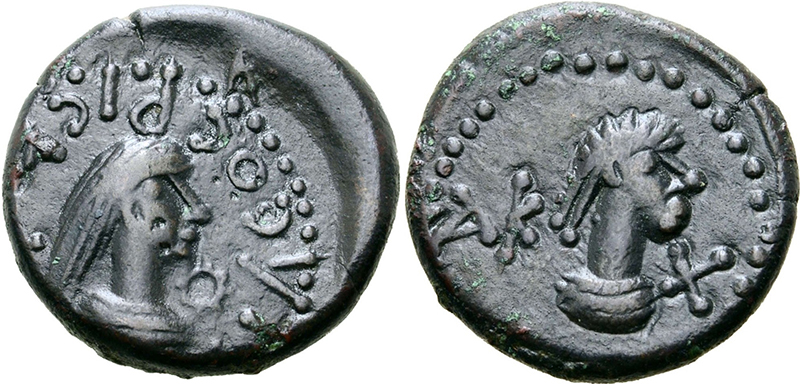- ΒΑCΙΛΕωC ΡΗCΚΟΥΠΟΡΙC. Бюст царя вправо, справа «венок»