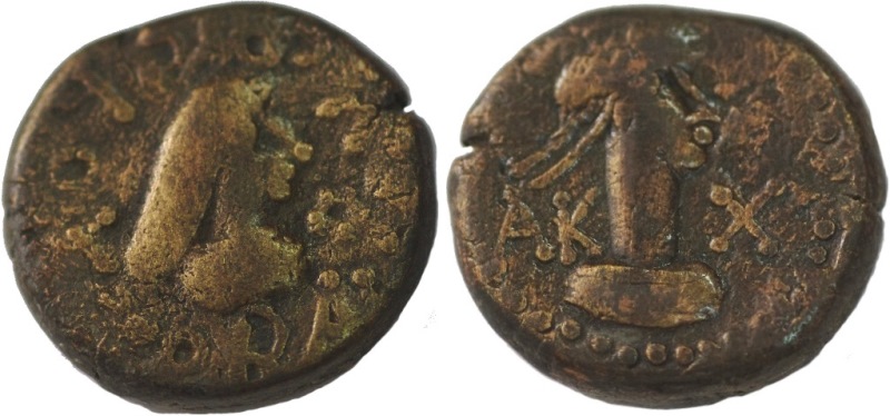 - ΒΑCΙΛΕωC ΡΗCΚΟΥΠΟΡΙC. Бюст царя вправо, справа «венок»