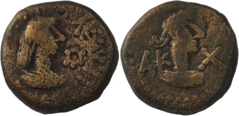 - ΒΑCΙΛΕωC ΡΗCΚΟΥΠΟΡΙC. Бюст царя вправо, справа «венок»