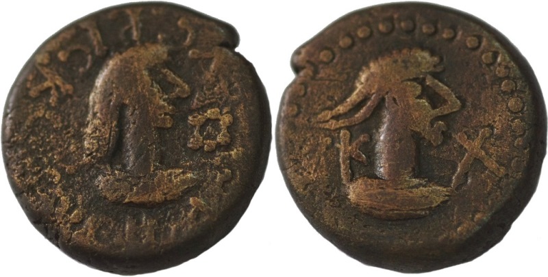 - ΒΑCΙΛΕωC ΡΗCΚΟΥΠΟΡΙC. Бюст царя вправо, справа «венок»
