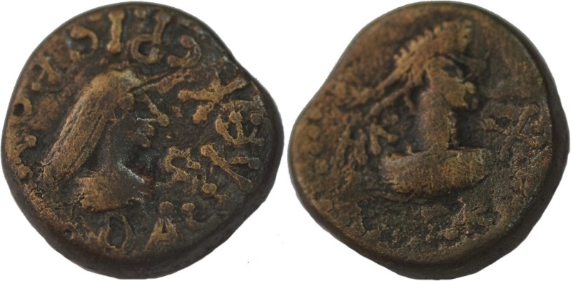 - ΒΑCΙΛΕωC ΡΗCΚΟΥΠΟΡΙC. Бюст царя вправо, справа «венок»