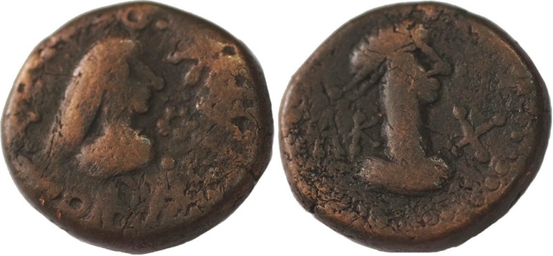 - ΒΑCΙΛΕωC ΡΗCΚΟΥΠΟΡΙC. Бюст царя вправо, справа «венок»