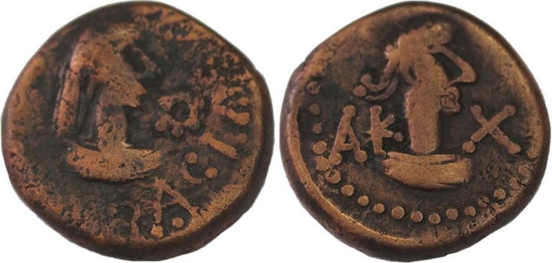 - ΒΑCΙΛΕωC ΡΗCΚΟΥΠΟΡΙC. Бюст царя вправо, справа «венок»