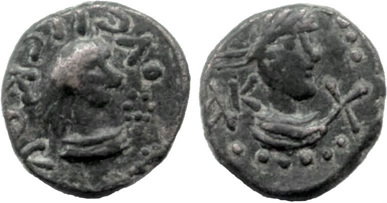 Лицевой штемпель использован при чеканке типа 000-4838. ----------- Данный тип подражания опубликован: Юшков В.Н. "Боспорские монеты от Котиса III до Рискупорида V". 2010г. №256