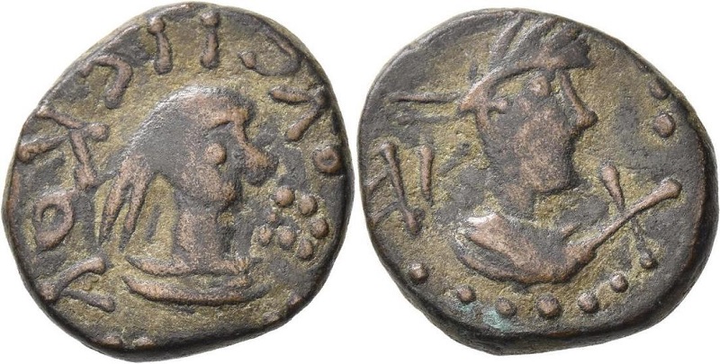 Бюст императора вправо, по сторонам год AKX (621 г. б. э.)