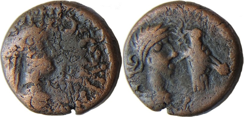 Бюст императора вправо, внизу год АKX (621 г. б. э.), справа орел в иную сторону на шаре с венком в клюве