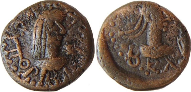 ΒΑCΙΛΕωC ΡΗCΚΟΥΠΟΡΙC. Бюст царя вправо, справа звезда