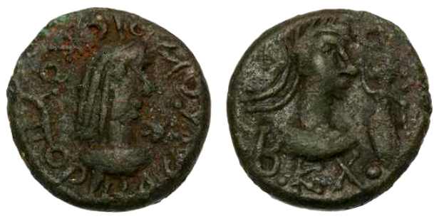 ΒΑCΙΛΕωC ΡΗCΚΟΥΠΟΡΙC. Бюст царя вправо, справа звезда
